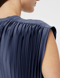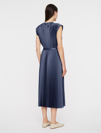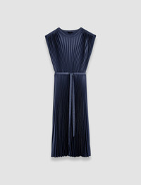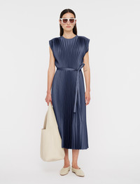 The Volta Knit Weave Plisse Dress is a relaxed fit, pleated dress, crafted from a crepe yarn which offers a smooth, silk-like hand feel. This fluid style features a gathered, elasticated waist with a tie belt. Simple and elegant in design, this dress is ideal for any occasion. - Designed for a relaxed fit - Mid-length - Ribbed neckline - Gathered shoulder detailing - Gathered, elasticated waist - Removable belt - Product code: jf0090981403 - Harbour Blue SIZE ADVICE - Model wears size FR 36/UK 8/EU 34/US 4/DE 34/IT 40/JP 7 CARE & MATERIALS - 100% Polyester - Do not wash - Do not bleach - Do not tumble dry - Iron low temperature setting - Dry clean 100% GRS recycled polyester Certified by ECOCERT GREENLIFE Licence 272512 Products certified to the Global Recycled Standard (GRS) contain recycled polyester that has been (independently) verified at each stage of the supply chain, from the source to the final product. In addition, social, environmental, and chemical criteria related to processing are required.