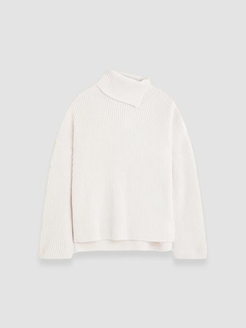 JOSEPH's signature merino wool cardigan stitch group has been reworked with cashmere and silk, creating the perfect mid-weight knit with a soft hand feel. This is a relaxed fit style featuring a slit high neck collar, dropped shoulders and a step hem. - Designed for a relaxed fit - Slit high neck - Dropped shoulders - Step hemline - Mid-weight knit - Product code: jf0086310640 SIZE ADVICE - Model wears size M CARE & MATERIALS Discover the Care Guide, a guide to help you to care for your garments. - 80% Wool 10% Cashmere 10% Silk - Machine wash, wool/silk program wash, very gentle spin - Do not bleach - Do not tumble dry - Iron low temperature setting - Dry clean mild - Use a wool shampoo - Wash inside out with similar colours The Responsible Wool Standard is guaranteeing animal welfare, land management and social requirements on the entire supply chain, from wool farmer to Joseph. This standard is backed up by independent certification. Certified by Ecocert Greenlife, certification N° 272512 JOSEPH LIMITED.