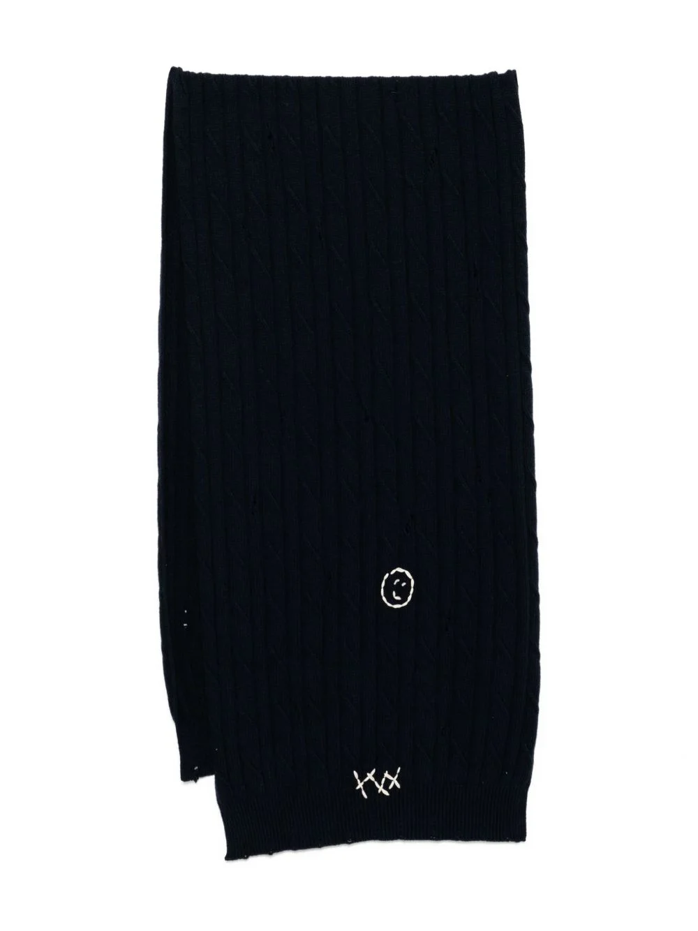 distressed scarf Highlights - Dark blue - Rectangle shape - Decorative stitching Made in Italy Composition Merino 40%, Viscose 30%, Polyamide 20%, Cashmere 10% SIZE & FIT Measurement LENGTH 66.92 in(170 cm) WIDTH 17.91 in(45.5 cm)