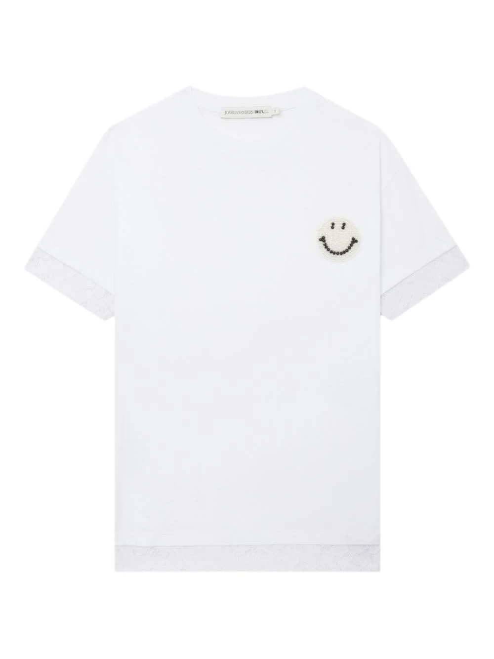 lace-trimmed smiley-face T-shirt Highlights - White - Smiley-face embellishment - Lace-trimmed sleeves - Lace-trimmed hem - Short sleeves - Round neck Made in Italy Composition Fabric 100% Washing instructions Read Manufacturer Guidelines