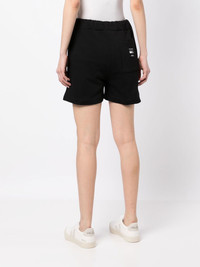 smiley-face print cotton shorts black cotton smiley face print elasticated drawstring waistband two side inset pockets rear patch pocket Made in Italy Composition Cotton 100% SIZE & FIT Model measurements Height 5 ft 10 in(1.78 m) Bust/Chest 33.46 in(85 cm) Hips 35.43 in(90 cm) Waist 24.4 in(62 cm) FittingInformation This piece fits true to size. We recommend you get your regular size Designed to be fitted at the waist, loose over the leg Made with a mid-weight fabric Washing instructions Hand Wash