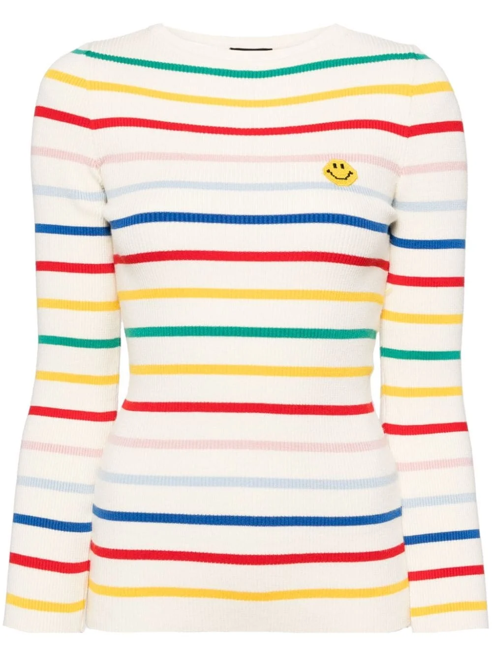 striped sweater Highlights - White/multicolour - Ribbed knit - Round neck - Stripe pattern - Applique logo - Long sleeves - Straight hem Made in Italy Composition Viscose 52%, Polyester 26%, Polyamide 22%
