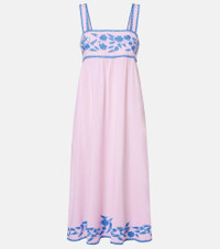 Juliet Dunn’s designs are handmade by skilled artisans using traditional techniques. This midi dress is crafted from light cotton and linen with fluid self-ties and charming embroideries. Product Details - Material: 93% cotton, 7% linen - Care instructions: dry clean - Made in India - Designer color name: Petal Pink/ Denim - Item color: pink - Closure: invisible zipper - Attached belt - Item number: P01123075 Size & Fit - True to size - Cinched waist - Non-stretchy fabric - The model seen in the picture is 178cm-5'10" and wearing a size 0