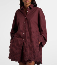 London-based designer Juliet Dunn employs Indian artisans to apply traditional techniques such as block printing, mirror work, and embroidery to her designs. This shirt is cut from cotton and richly embroidered with tonal flowers. Product Details - Material: 100% cotton - Care instructions: machine wash at 30 degrees - Made in India - Designer color name: Black Cherry - Item color: burgundy - Collar: classic (Straight point) - Closure: buttoned front - Item number: P01123113 Size & Fit - True to size - Dropped shoulders - Designed for a loose fit - Non-stretchy fabric - Falls below the hip - The model seen in the picture is 178cm-5'10" and wearing a size 0