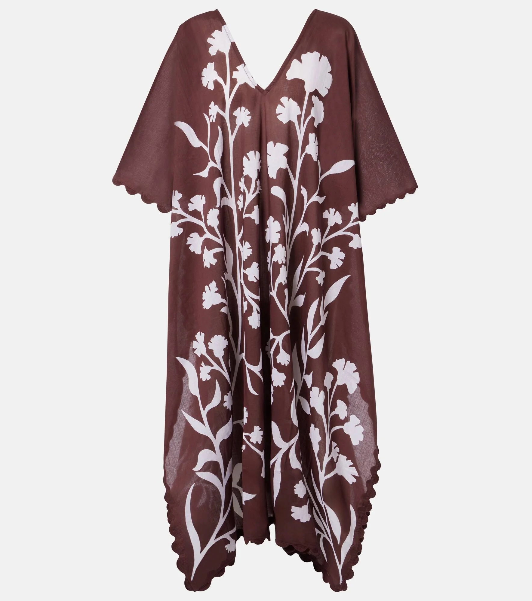 London-based designer Juliet Dunn employs Indian artisans to apply traditional techniques such as block printing, mirror work, and embroidery to her designs. This breezy kaftan is cut from cotton and features an intricate floral motif. Product Details - Material: 100% cotton - Care instructions: machine wash at 30 degrees - Made in India - Designer color name: Black Cherry/White - Item color: brown, white - Closure: snap-buttoned fastenings - Hem: scalloped - Item number: P01123119 Size & Fit - True to size - One size: perfect fit for sizes XS-L - Designed for a loose fit - Non-stretchy fabric