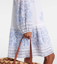 Crafted from pure cotton, this minidress from Juliet Dunn showcases an allover floral print. This design is cut to a relaxed silhouette and features a V-neckline and elasticated cuffs. Product Details - Material: 100% cotton - Care instructions: hand wash - Made in India - Designer color name: White/Electric Blue - Item color: white, blue - Trim: 100% metallic fibres - Cuff: elasticated - Item number: P01077220 Size & Fit - True to size - Semi-sheer - Oversized - Non-stretchy fabric - The model seen in the picture is 178cm-5'10" and wearing a size 0