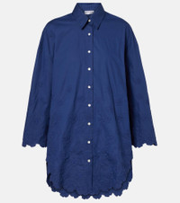 London-based designer Juliet Dunn employs Indian artisans to apply traditional techniques such as block printing, mirror work, and embroidery to her designs. This shirt dress is crafted from cotton poplin and is topped with embroidered floral details. Product Details - Material: 100% cotton - Care instructions: machine wash at 30 degrees - Made in India - Designer color name: Navy - Item color: blue - Collar: classic (Straight point) - Closure: buttoned front - Hem: uneven - Item number: P01123090 Size & Fit - True to size - Dropped shoulders - Designed for a loose fit - Non-stretchy fabric - Falls below the hip - The model seen in the picture is 178cm-5'10" and wearing a size 0