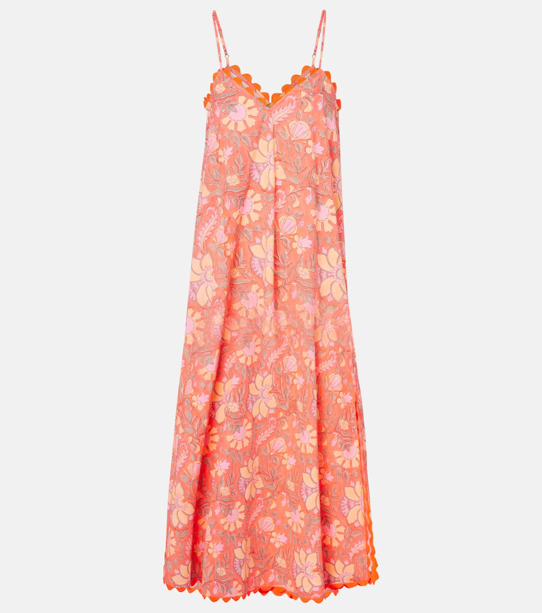Crafted from pure cotton, this slip dress showcases scalloped detailing and a floral pattern all over. Handmade by skilled artisans using traditional dyeing and printing techniques, Juliet Dunn’s designs are a love letter to Indian craftsmanship. Product Details - Material: 100% cotton - Care instructions: hand wash - Made in India - Designer color name: Scarlet/Peach/Mink - Item color: red, multicolor - Adjustable shoulder straps - Side slits - Item number: P01077197 Size & Fit - True to size - Low back - Designed for a loose fit - Non-stretchy fabric - The model seen in the picture is 178cm-5'10" and wearing a size 0