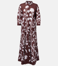 London-based designer Juliet Dunn employs Indian artisans to apply traditional techniques such as block printing, mirror work, and embroidery to her designs. This breezy midi dress is cut from cotton and features an intricate floral motif. Product Details - Material: 100% cotton - Care instructions: machine wash at 30 degrees - Made in India - Designer color name: Black Cherry/ White - Item color: brown, white - Collar: classic (Straight point) - Cuff: buttoned - Pockets: side slit pockets - Closure: concealed button placket - Hem: scalloped - Item number: P01123112 Size & Fit - True to size - Cinched waist - Non-stretchy fabric - The model seen in the picture is 178cm-5'10" and wearing a size 0