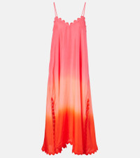 Crafted from pure silk, this slip dress from Juliet Dunn showcases a gradient color pattern. This design features a V-neckline, side slits, and scalloped trims. Product Details - Material: 100% silk - Care instructions: dry clean - Made in India - Designer color name: Daquiri - Item color: pink, orange - Trim: 100% fabric - Side slits - Adjustable shoulder straps - Collar: V-neck - Item number: P01077191 Size & Fit - True to size - Low back - Designed for a loose fit - Non-stretchy fabric - slit length 50,0cm-19.5" - The model seen in the picture is 178cm-5'10" and wearing a size 0