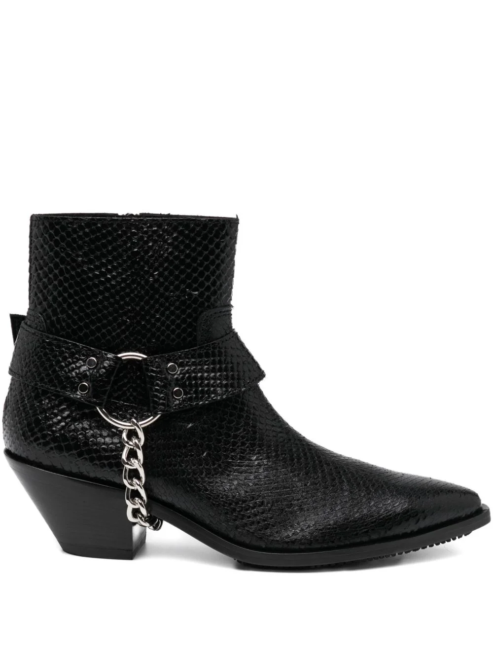 50mm chain-detail boots Highlights - Black - Side zip fastening - Pointed toe - Branded insole Imported Composition Outer: Leather 100% Lining: Leather 100% Sole: Leather 100% SIZE & FIT Measurement HEEL 1.96 in(5 cm)