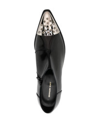60mm stud boots Highlights - Black/silver-tone - Leather - Patent finish - Side zip fastening - Mid wedge heel - Pointed toe - Branded leather insole Imported Composition Outer: Leather 100% Lining: Leather 100% Sole: Leather 100% SIZE & FIT Measurement HEEL 2.36 in(6 cm) Sole height 0.47 in(1.2 cm)
