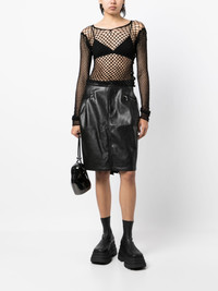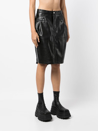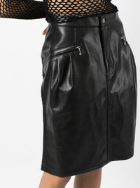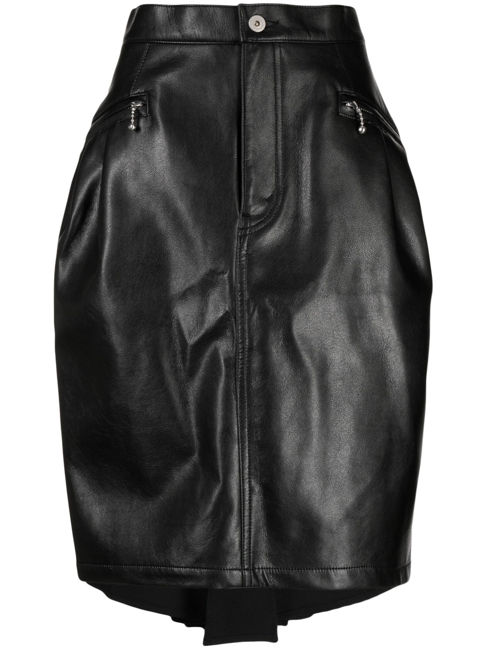 asymmetric draped leather skirt asymmetric draped leather skirt from Junya Watanabe featuring black, leather, concealed fly and button fastening, two side zip-fastening pockets, draped back, fitted waistline and asymmetric hem. Imported Composition Leather 100% SIZE & FIT Model measurements Height 5 ft 10 in(1.77 m) Bust/Chest 30.3 in(77 cm) Hips 33.9 in(86 cm) Waist 25.2 in(64 cm) FittingInformation This midi-length skirt is intended to be worn just below the waist Firm leather offering little flexibility to maintain its durability and sturdiness This piece fits true to size – take your usual size
