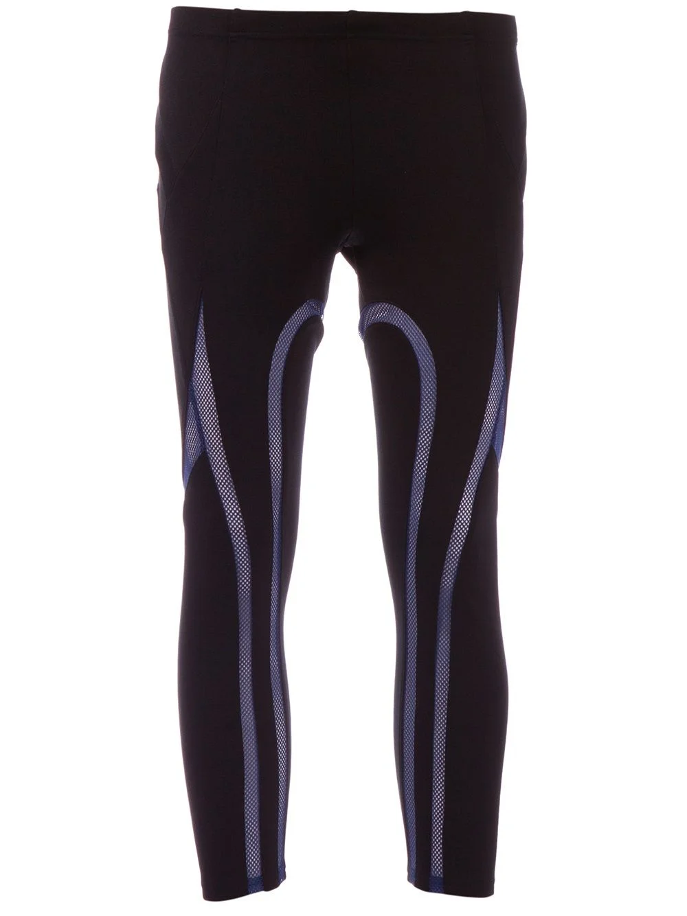 bi-colour mesh legging Black legging from Junya Watanabe Comme des Garcons featuring a fitted waistband, contrasting blue mesh panels and a cropped leg. Imported Composition Polyester 100% Washing instructions Dry Clean Only