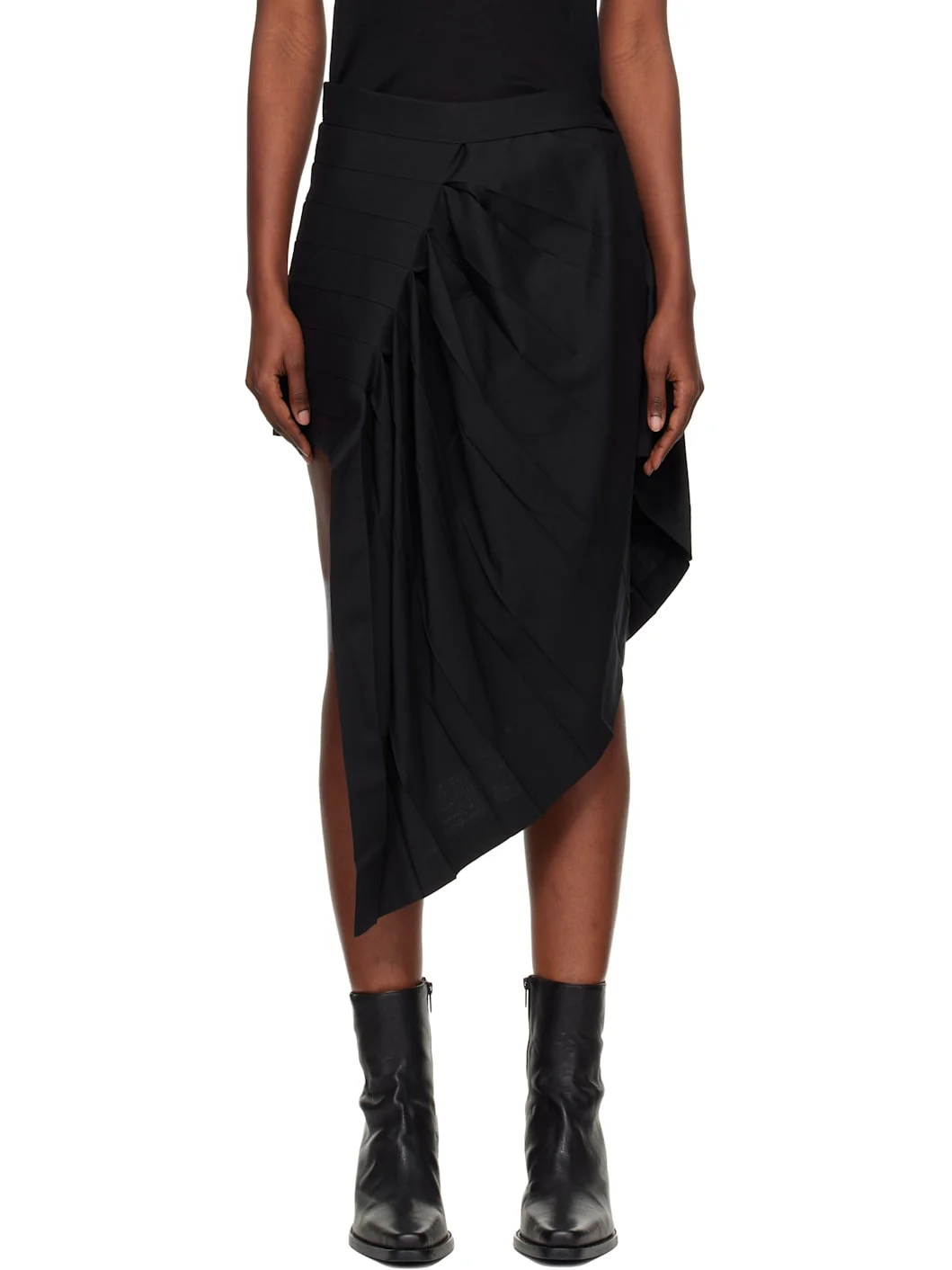 Wool-blend twill miniskirt. · Pleats throughout · Asymmetrical hem · Zip closure at side seam Supplier color: Black 50% wool, 50% polyester. Made in Japan 252253F090000