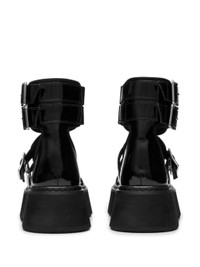 black calf leather caged design round open toe buckle-strap fastening branded leather insole flatform rubber sole Size & Fit Model Measurements: Bust: 0cm Height: 0cm Hips: 0cm Waist: 0cm Fabric and Care Designer Style ID: JMK103 Designer Colour: 1 - Black Composition: Sole: Rubber 100%; Outer: Calf leather 100%; Lining: Calf leather 100%Made in Japan