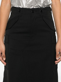 cargo midi skirt Highlights - Black - Front button and zip fastening - Belt loops - Two side flap pockets - Two rear flap pockets Imported Composition Outer: Polyester 68%, Wool 32% Lining: Cupro 100% SIZE & FIT Model measurements Height 5 ft 10 in(1.78 m) Bust/Chest 32.67 in(83 cm) Hips 35.43 in(90 cm) Waist 23.22 in(59 cm) FittingInformation This midi-length skirt is intended to be worn just below the waist The vented hem offers movement at the rear Made from a midweight non-stretch fabric