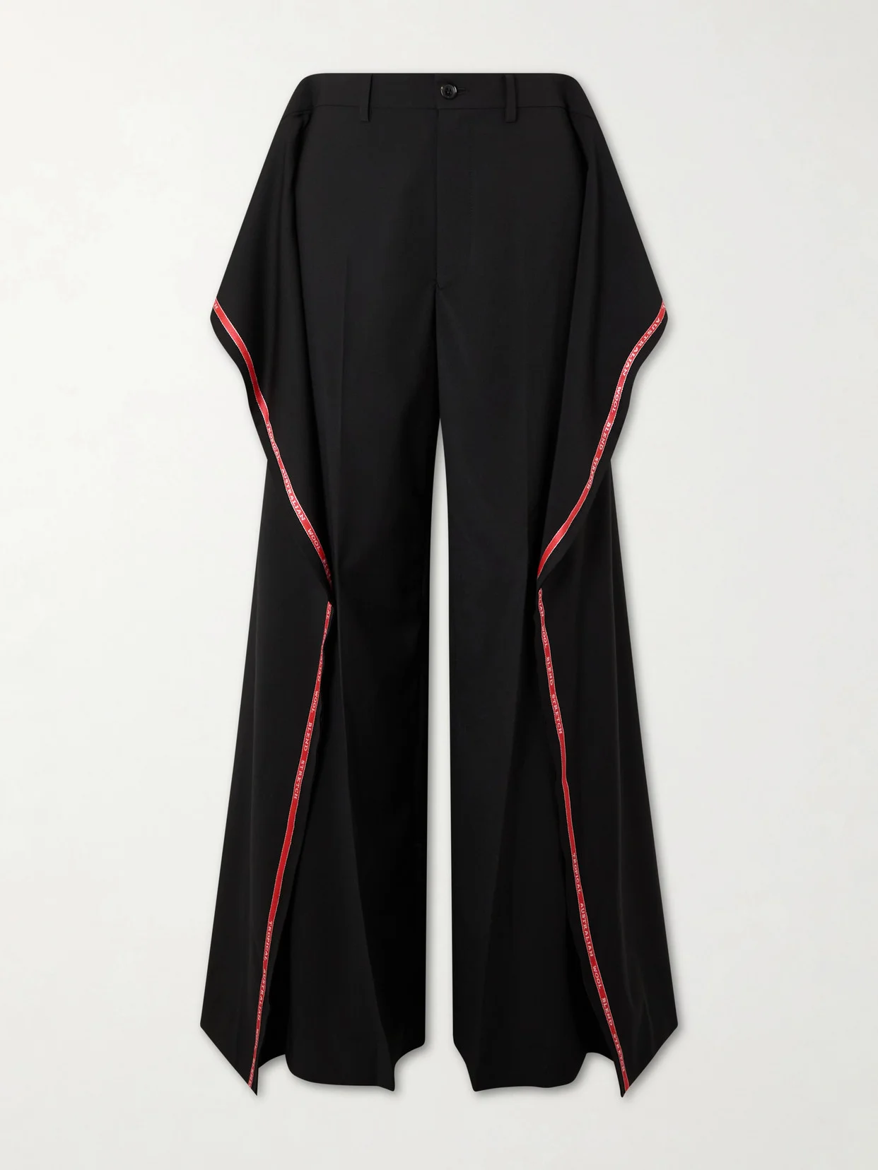 Junya Watanabe distorts classic tailoring through an experimental lens. Made from wool-blend crepe, these pants have exaggerated, flouncy sides detailed with an orange stripe.