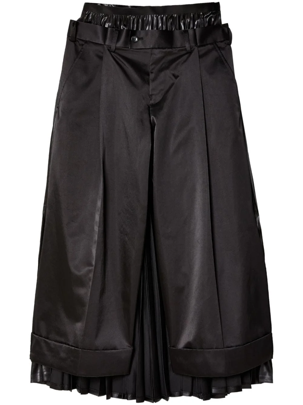 cropped pleated trousers Highlights - Black - Pleat detailing - Mid-rise - Belt loops - Concealed fly and button fastening - Two side slit pockets - Turn-up cuffs - Cropped Imported Composition Polyester 100%, Nylon 100%