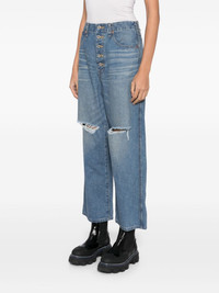 distressed straight-leg jeans Highlights - Ocean blue - Cotton - Front button fastening - Belt loops - Adjustable waist strap - Washed denim - Distressed effect - Classic five pockets - Contrast stitching Imported Composition Cotton 100% SIZE & FIT Model measurements Height 5 ft 10 in(1.77 m) Bust/Chest 31.49 in(80 cm) Hips 35.43 in(90 cm) Waist 25.19 in(64 cm) Measurement FRONT RISE 14.37 in(36.5 cm) INSIDE LEG 24.8 in(63 cm) HIPS 38.18 in(97 cm) WAIST 27.95 in(71 cm) FittingInformation Designed for a straight-leg fit, these jeans allow for a close fit at the waist and an unrestricted and comfortable fit over the leg Cropped in length Sturdy and hard-wearing, this denim piece offers no stretch