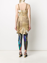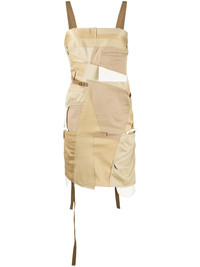 deconstructed apron dress Beige cotton blend deconstructed apron dress from Junya Watanabe featuring stitched panels, a square neck, shoulder straps, a fitted silhouette, an invisible back zip fastening, a short length and a raw uneven hemline. Imported Composition Outer: Cotton 83%, Nylon 9%, Polyester 7%, Polyurethane 1% Lining: Cupro 60%, Polyester 40% SIZE & FIT Model measurements Height 5 ft 9 in(1.76 m) Bust/Chest 31.88 in(81 cm) Hips 37 in(94 cm) Waist 24.4 in(62 cm) FittingInformation This piece fits true to size. We recommend you get your regular size Cut for a slim fit Made with a mid-weight non-stretch fabric Washing instructions Dry Clean Only