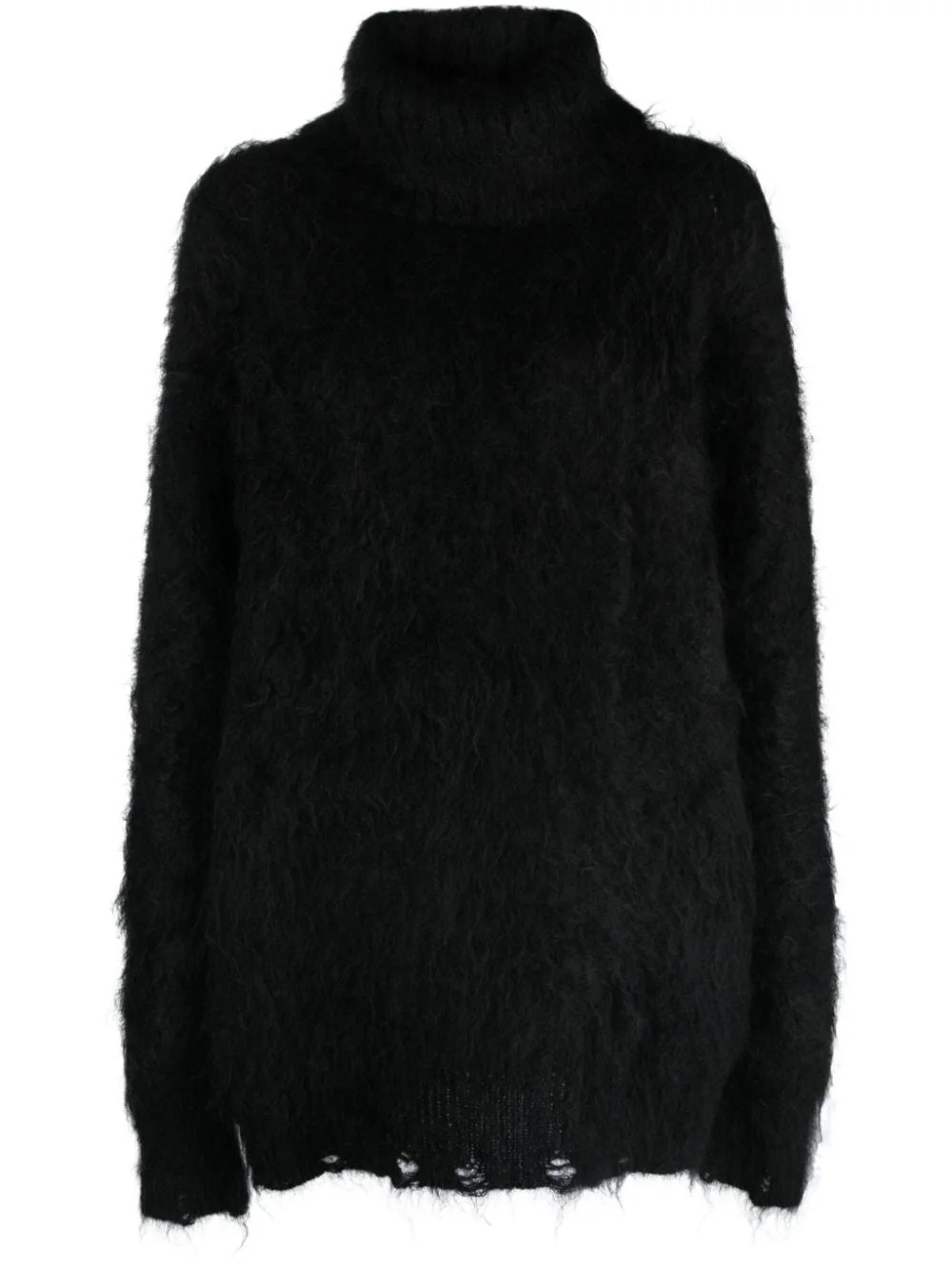 distressed brushed-effect jumper Highlights - Black - Wool blend - Brushed effect - Distressed effect - High neck - Long sleeves - Ribbed cuffs and hem - Straight hem Imported Composition Wool 75%, Nylon 25% SIZE & FIT Measurement LENGTH 29.13 in(74 cm) BUST 47.24 in(120 cm) Washing instructions Dry Clean Only