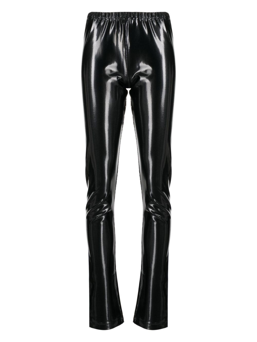 elasticated-waist vinyl trousers Highlights - Black - Pull-on style - Elasticated waistband - Straight leg - Slim cut Imported Composition Polyester 85%, Polyurethane 15%