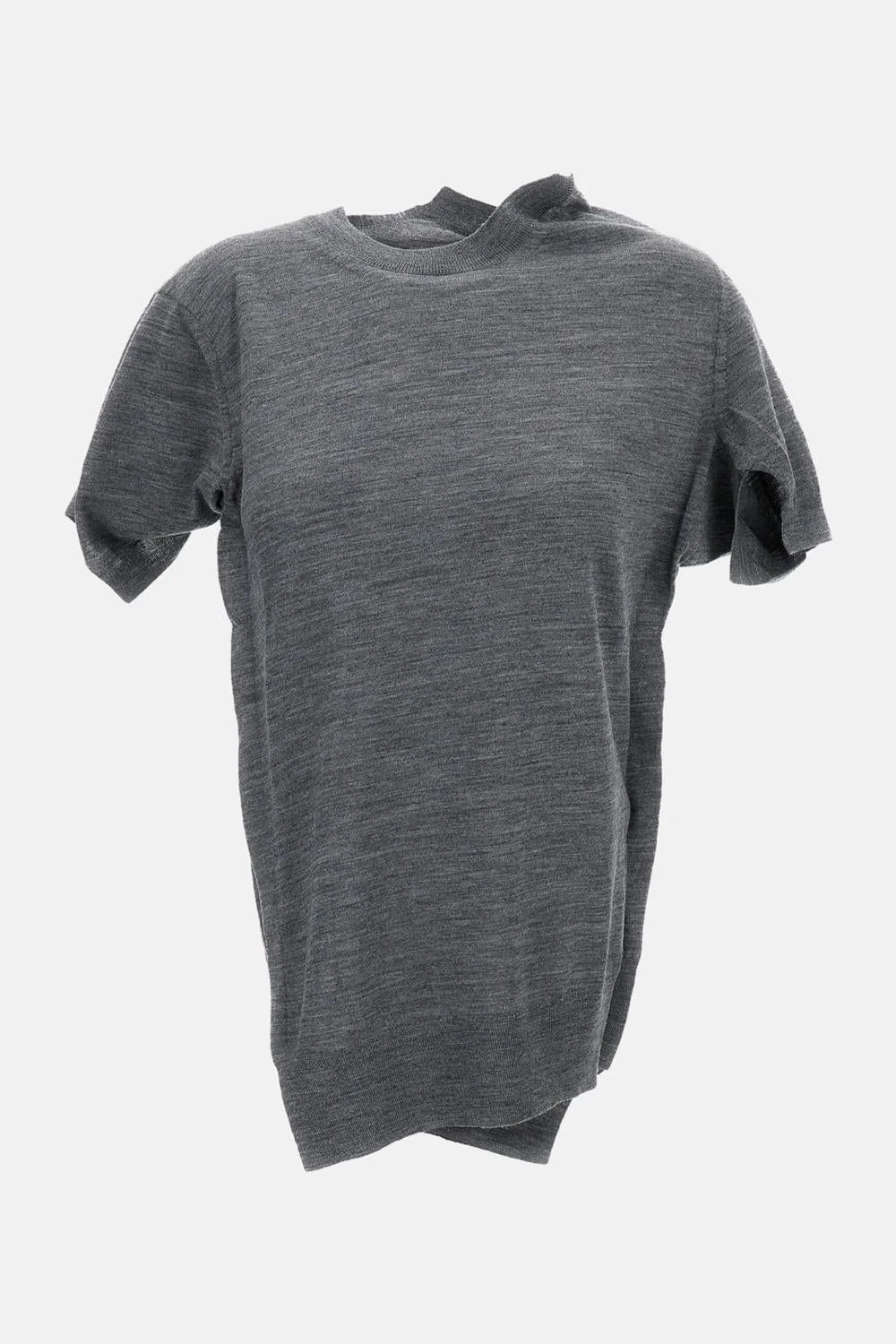 Fine wool sweater Short sleeves Deconstructed crew neck Asymmetric hem and sleeves Color: grey Details and Care Color: Grigio Composition: 100% VW Made in: Giappone Sku: JQN0010512