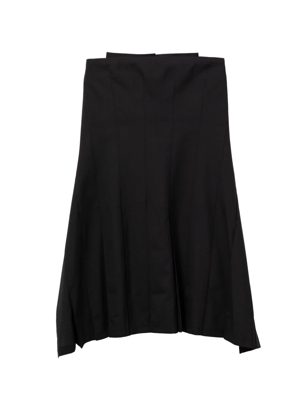 flared wrap midi skirt Highlights - Black - Wrap construction - A-line - Flared hem - Pleated details - Panelled construction - Concealed rear hook and zip fastening Imported Composition Polyester 47%, Wool 40%, Silk 10%, Polyurethane 3% Washing instructions Dry Clean Only