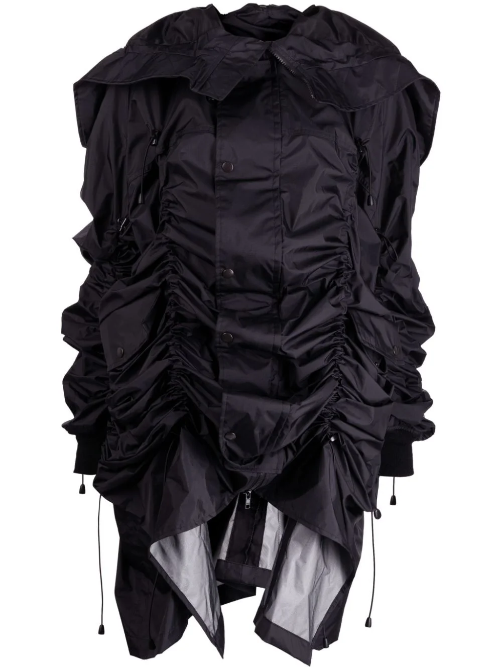 gathered-detail wool jacket Highlights - Black - Wool - Gathered detailing - Front press-stud fastening - Classic hood - Long sleeves - Drawstring hem Imported Composition Wool 100% Body: Nylon 100% SIZE & FIT Model measurements Height 5 ft 10 in(1.78 m) Bust/Chest 29.13 in(74 cm) Hips 35.43 in(90 cm) Waist 23.62 in(60 cm) FittingInformation Designed for an oversized fit, offering additional room throughout The adjustable drawstring means that you can adjust this piece’s fit to suit your comfort and preference Made from a midweight non-stretch fabric This piece fits true to size – take your usual size Washing instructions Hand Wash
