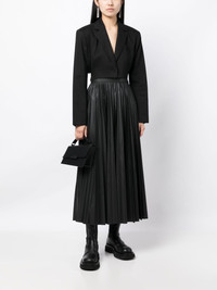 high-waist pleated skirt black fully pleated elasticated waistband flared hem mid-length Imported Composition Polyester 67%, Polyurethane 33% SIZE & FIT Model measurements Height 5 ft 10 in(1.77 m) Bust/Chest 28.74 in(73 cm) Hips 35.82 in(91 cm) Waist 24.4 in(62 cm) FittingInformation This midi-length skirt is intended to be worn high on the waist Made from a midweight non-stretch fabric, this piece offers minimal elasticity when worn This piece fits true to size – take your usual size Washing instructions Specialist Cleaning