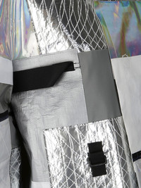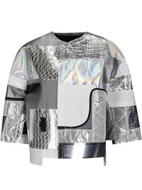 patchwork jacket Highlights - Silver-tone - Concealed front fastening - Crew neck - Long sleeves Imported Composition Polyester 100%, Nylon 100%, Polyethylene 100%
