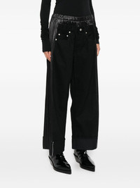 pleated-panel pants Highlights - Black - Pleated side panels - Elasticated waistband - Straight leg - Denim panels Imported Composition Polyester 100%, Cotton 100% SIZE & FIT Model measurements Height 5 ft 9 in(1.76 m) Bust/Chest 31.49 in(80 cm) Hips 35.03 in(89 cm) Waist 24.8 in(63 cm) Washing instructions Read Manufacturer Guidelines