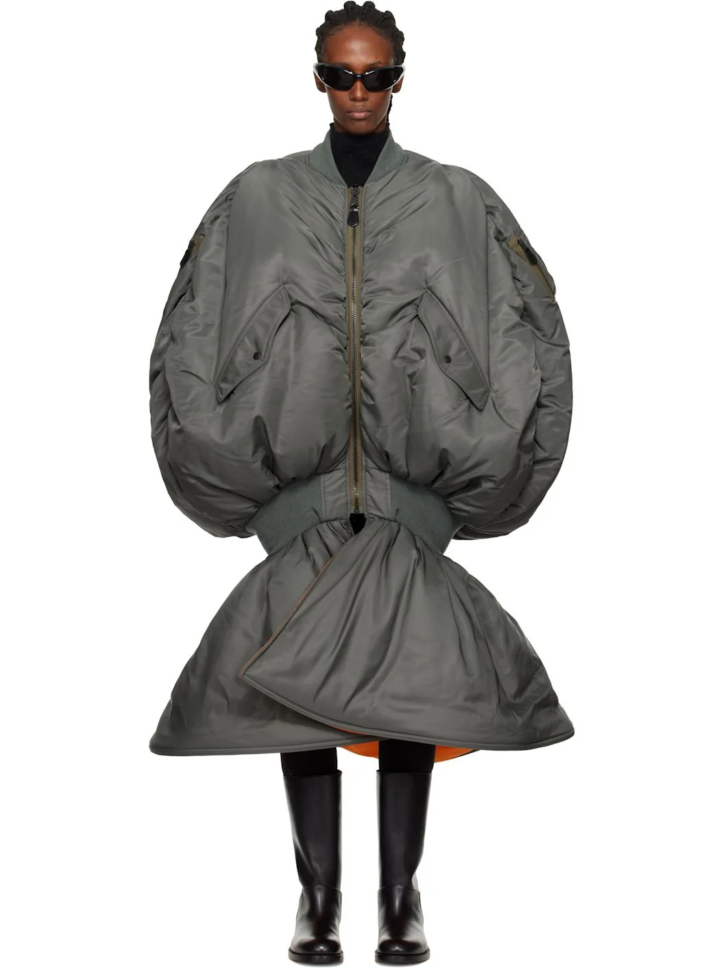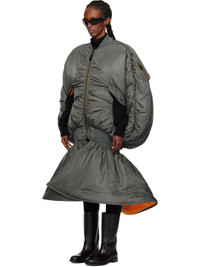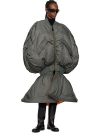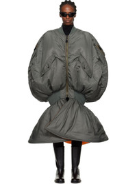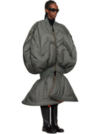 Insulated nylon twill maxi dress. · Rib-knit stand collar · Zip closure · Flap pockets at front · Central vent at front hem · Boning at flared hem · Utility pocket at shoulders · Full twill lining Supplier color: Sage green Body: 100% nylon. Trim: 100% wool. Fill: 100% polyester. Lining: 100% polyester. Made in Japan 252253F055000
