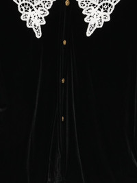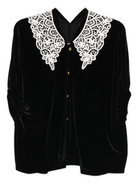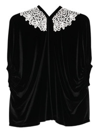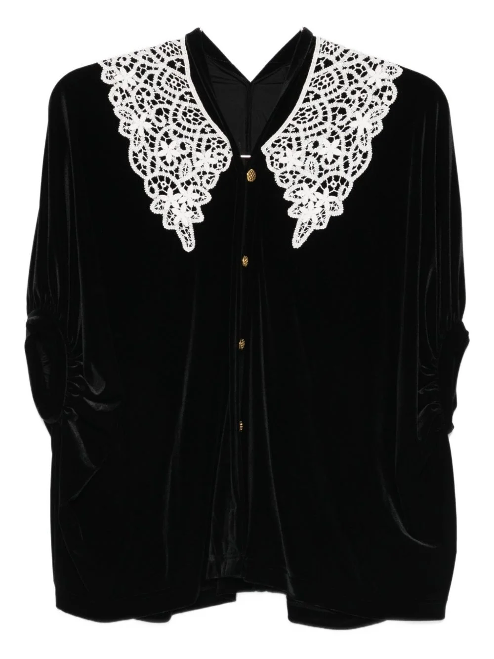 lace collar shirt Highlights - Black - Lace detailing - Button fastening - Gathered sleeves - Velvet effect - V-neck Imported Composition Polyester 90%, Polyurethane 10% Washing instructions Dry Clean Only