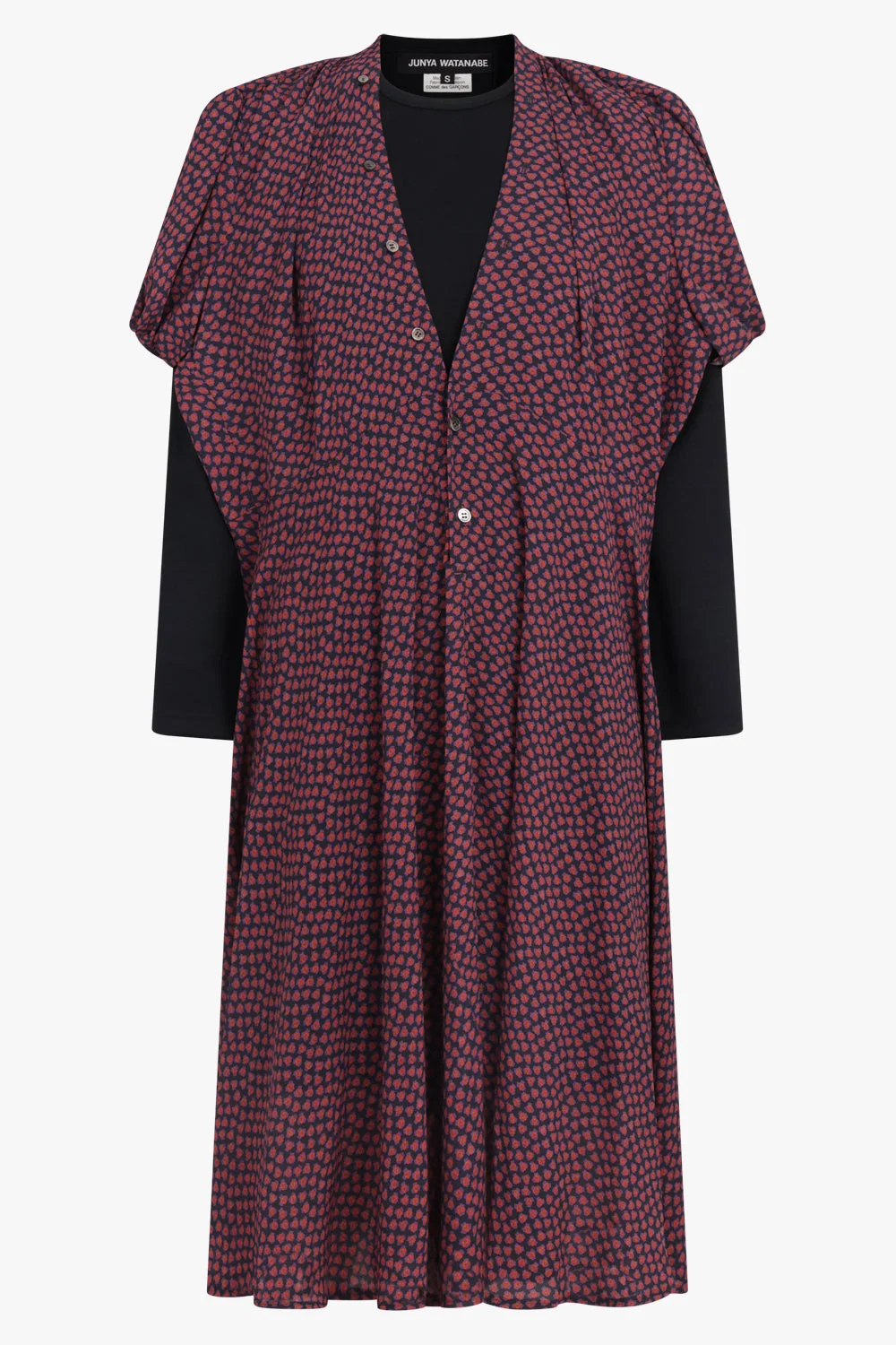 The Layer Knit Long-Sleeve Floral Print Midi Dress by Junya Watanabe combines comfort with a sculptural silhouette. Crafted in layered knit, it drapes fluidly while showcasing a vibrant floral print, with long sleeves and a relaxed midi shape balancing volume and structure for an elegant, effortless look. Subtle detailing and refined craftsmanship transform this piece into a statement dress that merges Junya Watanabe’s innovative sensibility with romantic, heritage-inspired charm. - Fabrication: 100% Polyester, 100% Wool - Layered knit fabric for soft texture and fluid drape - Vibrant floral print for visual depth and interest - Long sleeves and relaxed midi silhouette balancing volume and structure - Refined detailing highlighting craftsmanship Style it with heels and nice accessories to complement the sculptural silhouette and bring out the rich floral pattern. Size and Fit Tiah: Model is 178cm/5’9” and is wearing a size S Model Measurements: Bust: 86cm, Waist: 69cm, Hips 90.5cm Fits true to size Measurements S: Bust 100cm, Waist 100cm, Hip 100cm, Length 110cm M: Bust 104cm, Waist 104cm, Hip 104cm, Length 110cm