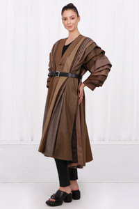 LAYERED COAT WITH REMOVABLE BELT | BROWN