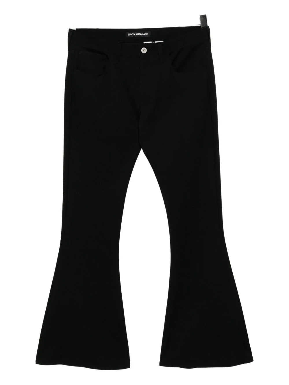 low-rise flared trousers Highlights - Black - Front button and zip fastening - Two side inset pockets - Two rear patch pockets Imported Composition Polyester 61%, Wool 39% Washing instructions Dry Clean Only