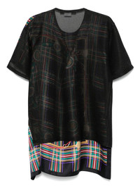 lurex-detailed T-shirt Highlights - Black - Check pattern - Layered details - Short sleeves - Asymmetric hem Imported Composition Silk 100%, Rayon 90%, Polyester 10%