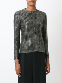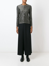 metallic sheen cardigan Black and gold-tone metallic sheen cardigan from Junya Watanabe Comme Des Garcons. Imported Composition Rayon 84%, Polyester 14%, Nylon 2% SIZE & FIT Model measurements Height 5 ft 10 in(1.79 m) Bust/Chest 32.67 in(83 cm) Hips 33.46 in(85 cm) Waist 24.01 in(61 cm) Washing instructions Dry Clean Only