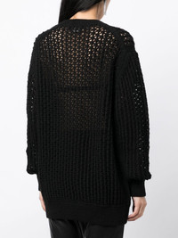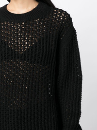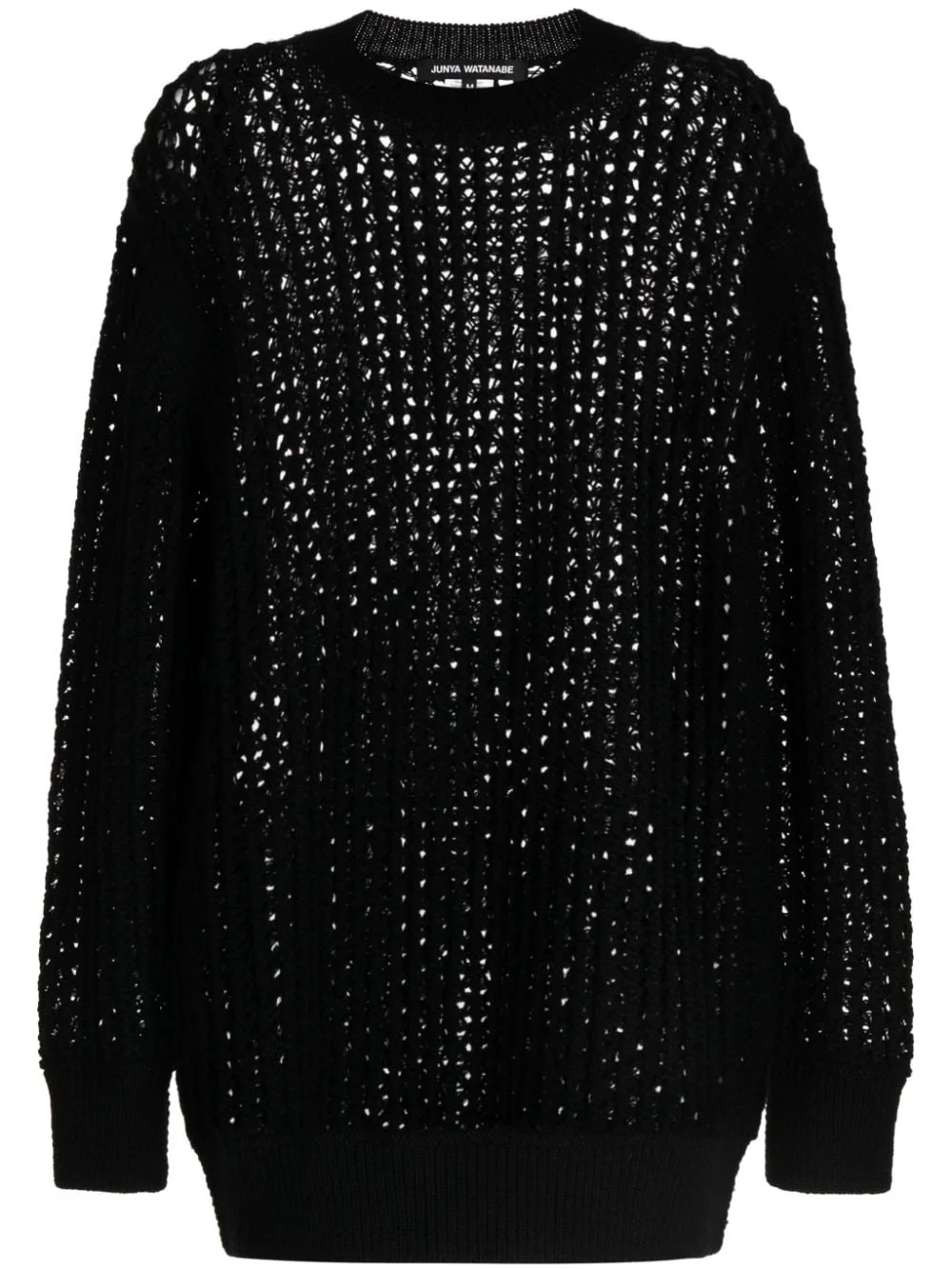 open-knit wool jumper Highlights - Black - Wool - Knitted construction - Open knit - Crew neck - Long sleeves - Straight hem Imported Composition Wool 100% SIZE & FIT Model measurements Height 5 ft 10 in(1.77 m) Bust/Chest 28.74 in(73 cm) Hips 35.82 in(91 cm) Waist 24.4 in(62 cm) FittingInformation Designed to be unstructured, offering a loose fit throughout The ribbed hem offers a close, comfortable fit Made with a midweight knit, this piece offers some stretch This piece fits true to size – take your usual size