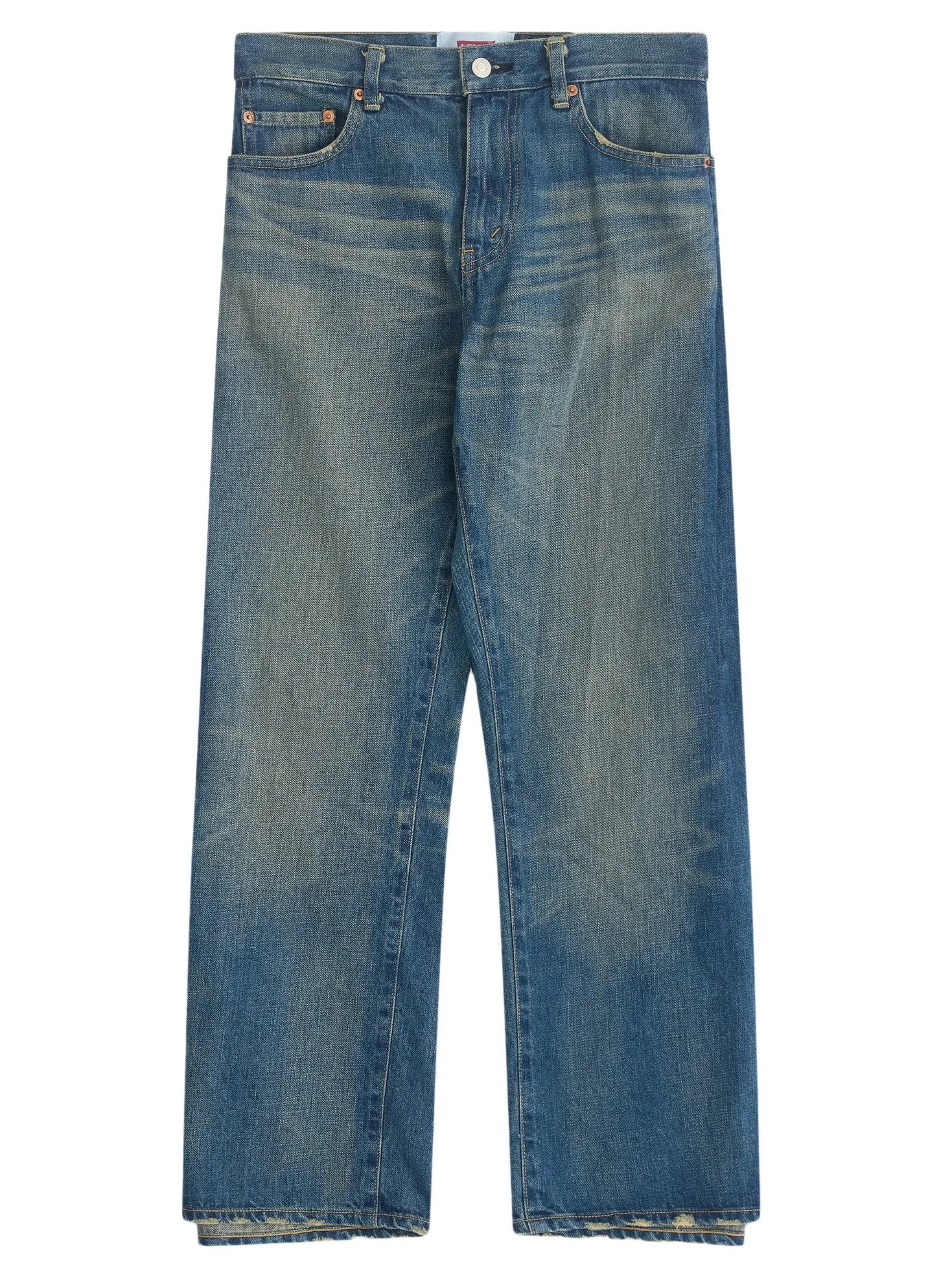 Ladies' Pants in Indigo from Junya Watanabe Highlights - washed indigo - straight leg - washed finish - rear fodled open seam - 5 pocket construction - button and zip fly fastening Made in Japan Designer ID: JP-P205-W25 Materials COTTON 100%