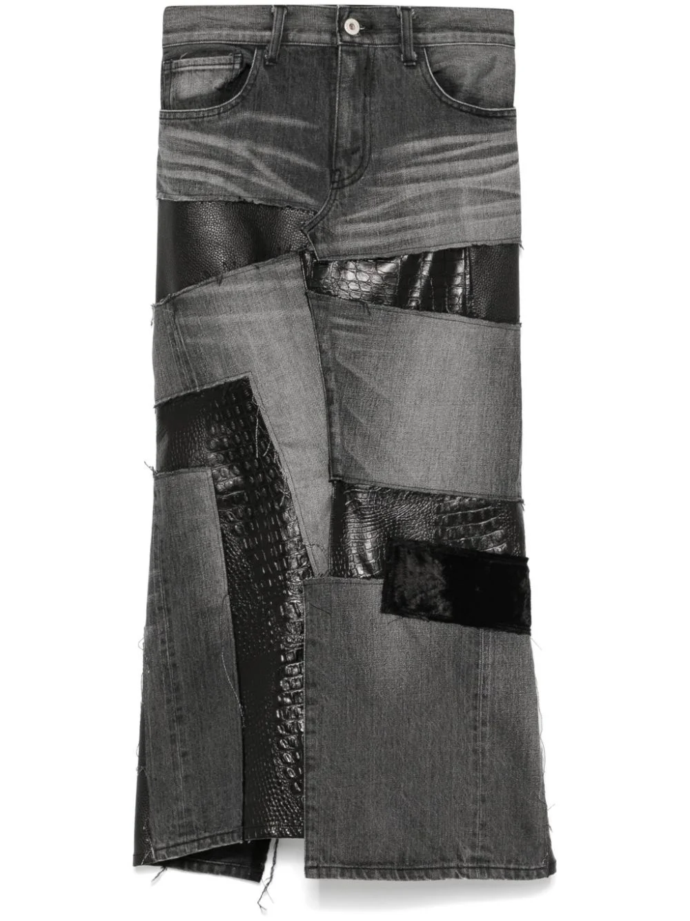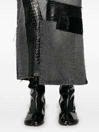 panelled midi skirt Highlights - Black - Cotton - Wool - Denim - Panelled design - Front button and zip fastening - Belt loops - Classic five pockets - Front slit - Rear slit - Straight hem - Mid-length Imported Composition Polyurethane Resin 100%, Cotton 100%, Wool 100%, Rayon 100% SIZE & FIT Model measurements Height 5 ft 10 in(1.77 m) Bust/Chest 28.74 in(73 cm) Hips 35.03 in(89 cm) Waist 23.62 in(60 cm) FittingInformation This midi-length skirt is intended to be worn just below the waist The vented hem offers movement at the rear Sturdy and hard-wearing, this denim piece offers no stretch