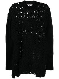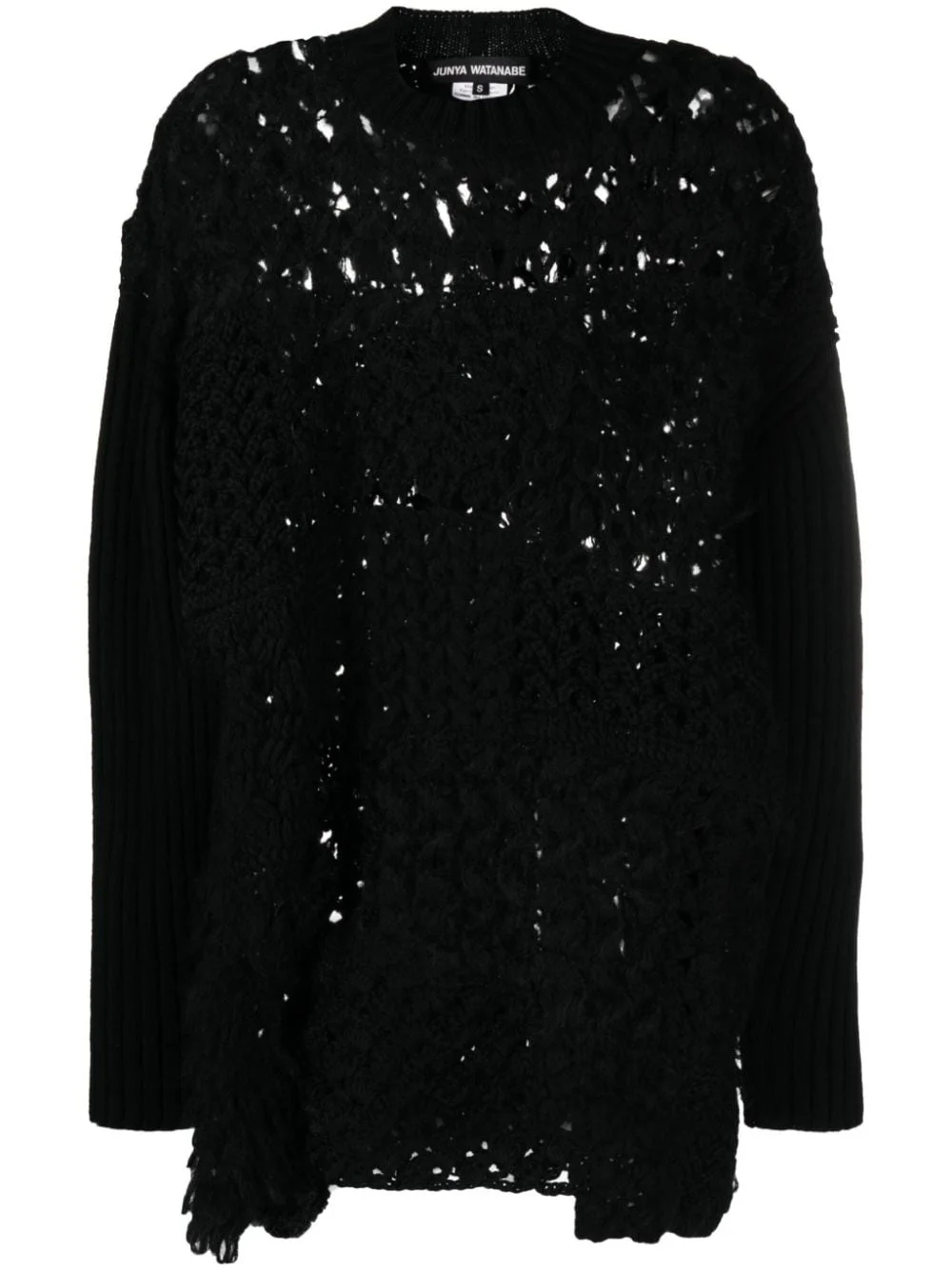 panelled open-knit jumper Highlights - Black - Wool blend - Panelled design - Open knit - Chunky knit - Ribbed detailing - Brushed effect - Crew neck - Drop shoulder - Long sleeves - Straight hem Imported Composition Wool 93%, Nylon 5%, Acrylic 1%, Rayon 1% SIZE & FIT Model measurements Height 5 ft 10 in(1.77 m) Bust/Chest 34.64 in(88 cm) Hips 35.43 in(90 cm) Waist 24.8 in(63 cm) FittingInformation Designed for a relaxed fit, this piece allows for comfort and movement when worn Made with a midweight knit, this piece offers some stretch This piece fits true to size – take your usual size Washing instructions Dry Clean Only