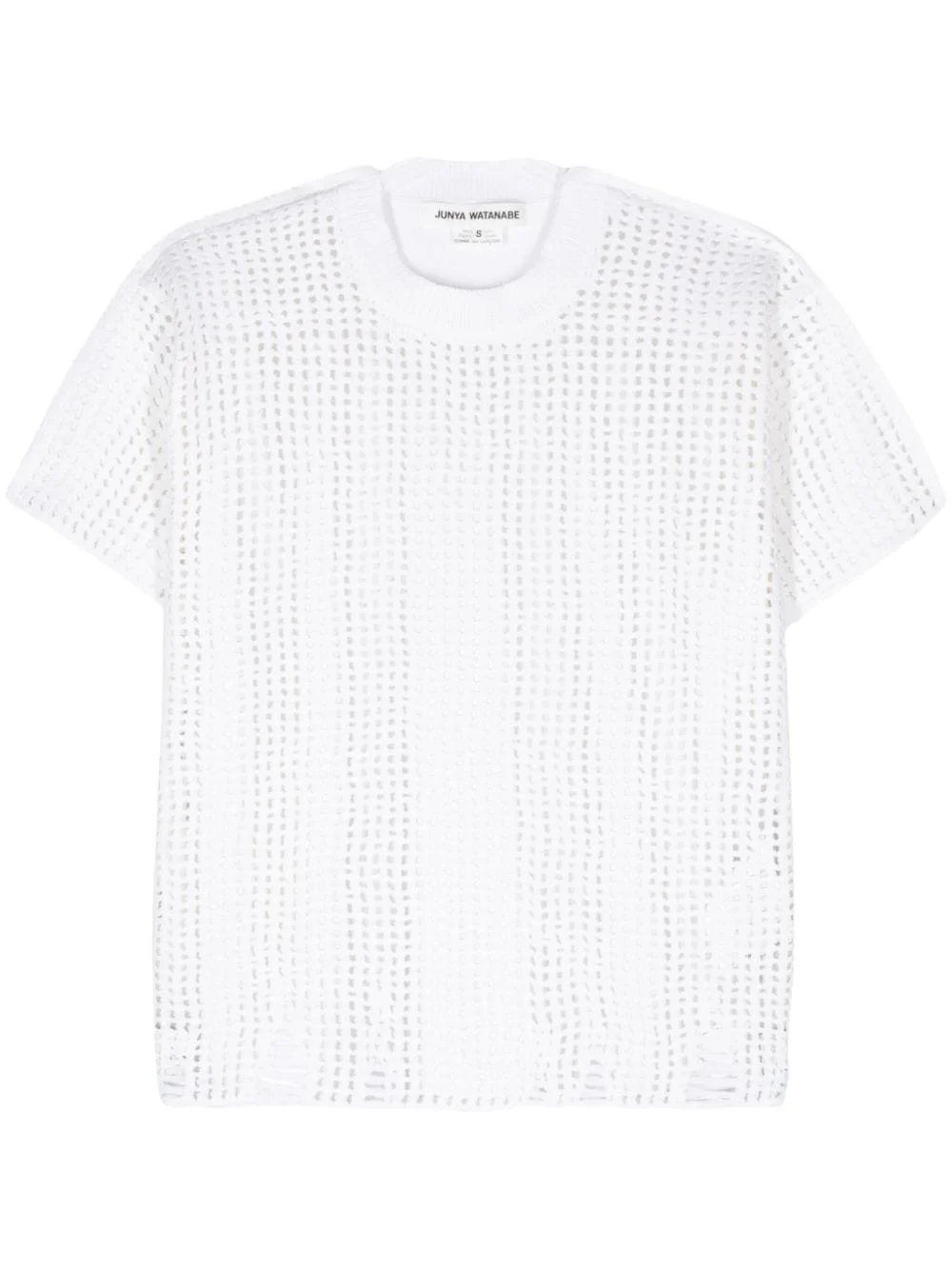panelled open-knit top cream white panelled design open knit crew neck short sleeves straight hem Imported Composition Polyester 100%