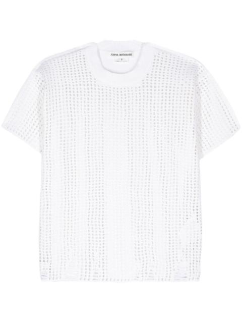 panelled open-knit top black panelled design open knit crew neck short sleeves straight hem Imported Composition Polyester 100%
