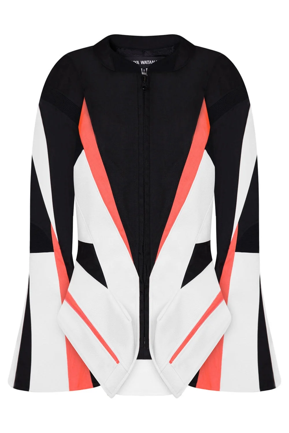 FITTED WAIST JACKET WITH FLARE SLEEVES | BLACK/WHITE/FLURO ORANGE