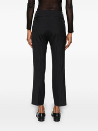 pinstripe slim-cut tailored trousers Highlights - Black - Pinstripe pattern - Tailored design - Slim cut - Mid-rise - Hook and zip fly fastening - Two diagonal pockets to the sides - Two rear button-fastening jetted pockets - Pressed crease - Straight hem Imported Composition Outer: Polyester 54%, Wool 46% Lining: Cupro 100% SIZE & FIT Model measurements Height 5 ft 11 in(1.8 m) Bust/Chest 32.67 in(83 cm) Hips 35.82 in(91 cm) Waist 25.98 in(66 cm) FittingInformation Designed for a straight-leg fit, these trousers allow for a close fit at the waist and an unrestricted, comfortable fit over the leg Made from a midweight non-stretch fabric This piece fits true to size – take your usual size