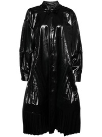 pleated dress Highlights - Black - Front button fastening - Pointed flat collar - Pleat detailing - Long puff sleeves - Buttoned cuffs - Chest patch pocket Imported Composition Polyester 100%