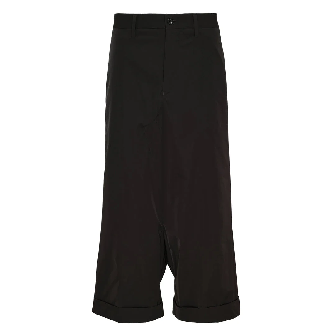 600080402BLK00L / JQ-P021/051/1/2A - Button and zip front closure - Wide-leg silhouette - Turned-up cuffs - Front pleats - Premium polyester twill construction - Relaxed fit through leg - Mid-rise waist Junya Watanabe Polyester Twill Pants deliver contemporary tailoring with deconstructed silhouettes and avant-garde proportions. Crafted from premium polyester twill in deep charcoal, featuring an unconventional wide-leg cut with turned-up cuffs. The architectural construction and signature asymmetrical styling create a bold statement piece for modern wardrobes.